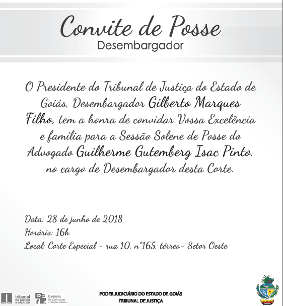 Convite de posse: Tribunal de Justiça do Estado de Goiás
