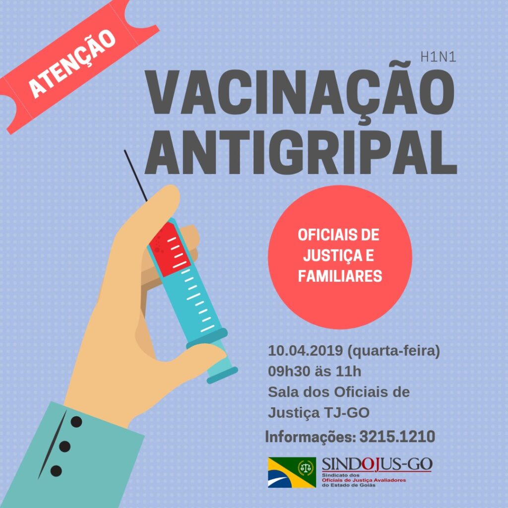 O SINDOJUS-GO realizará a vacinação antigripal para os Oficiais de Justiça de Goiânia e seus familiares no dia 10.04 (quarta-feira), das 09h30 às 11h, na sala dos Oficiais de Justiça de Goiânia. Os interessados devem deixar o nome e quantidade de vacinas, na lista disponível na Central de Mandados e também na sede do SINDOJUS-GO.