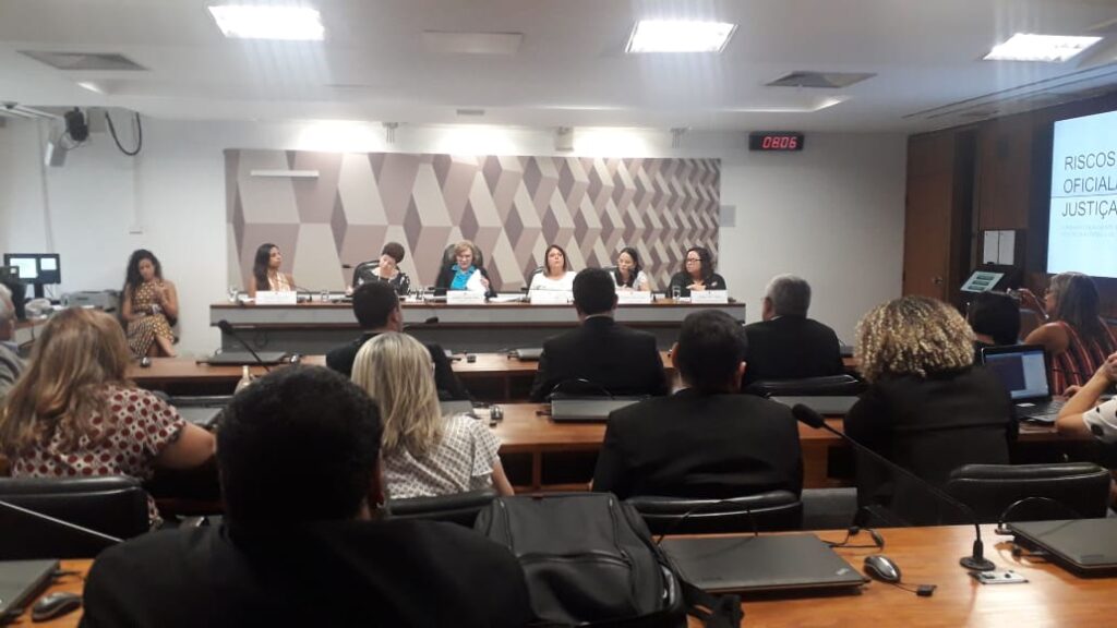 A senadora ressalta que as oficiais de Justiça saem exclusivamente para cumprir a medida judicial de afastar o agressor do lar. São diligências que podem acontecer em vários momentos, “inclusive durante a madrugada e em lugares inóspitos ou de difícil acesso”. “Normalmente, para oficializar o agressor, a servidora vai desacompanhada, colocando-se em risco. Portanto, faz-se necessária a discussão, tanto para conhecimento dessa realidade, quanto para busca de soluções”, esclarece Zenaide.
