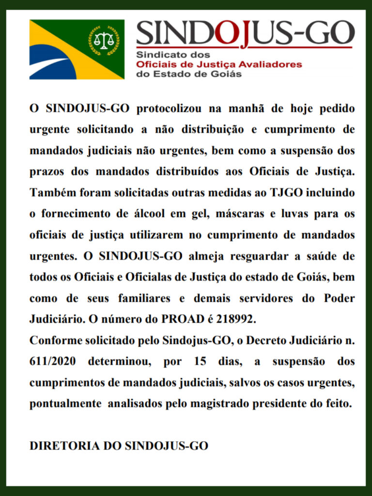 Para estancar qualquer sombra de dúvida o Sindojus-Go vem informar o seguinte: