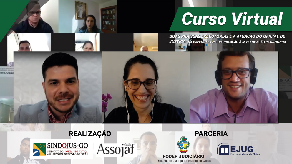 O SINDOJUS-GO finaliza com Chave de Ouro o Curso de Boas Práticas Executórias e a Atuação do Oficial de Justiça: da expertise em comunicação à investigação patrimonial ocorrido virtualmente nos dias 07, 14, 21 e 28 de outubro de 2020. O encontro superou as expectativas e foi sucesso absoluto.