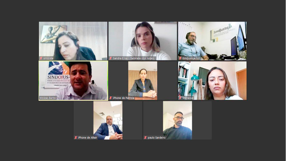 O SINDOJUS-GO, representado pelo presidente Moizés Bento dos Reis participou de um debate entre o TJGO, CGJGO e representantes dos magistrados e do funcionalismo. O objetivo foi avaliar o atual cenário da pandemia da COVID-19 em Goiás e a segurança do público interno e externo na realização de atividades presenciais no Poder Judiciário goiano. O encontro virtual ocorreu no dia 09/08/21.