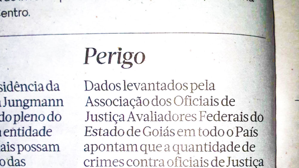 A coluna Giro do jornal O Popular do dia 24/08/2021, destacou a atualização do Dossiê de Crimes contra Oficiais de Justiça, elaborado pela ASSOJAF-GO. O dossiê é um retrato da violência praticada contra esses profissionais em todo o País. A nova edição incluiu um capítulo que abrange os impactos da pandemia de Covid-19 sobre o Oficialato.