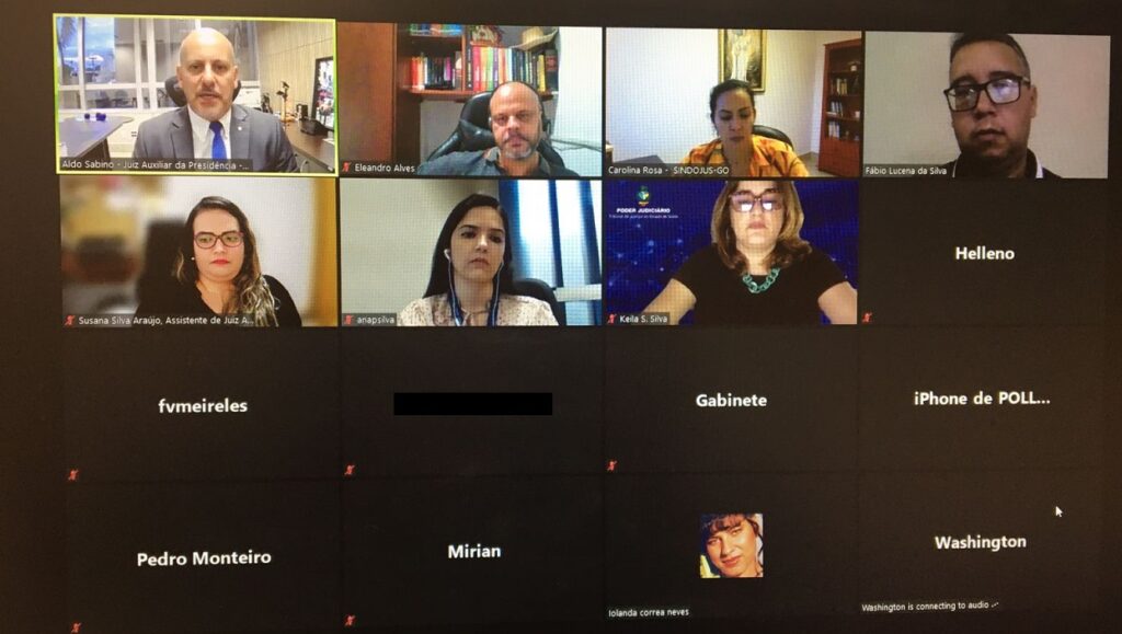 O SINDOJUS-GO, representado pelo seu Vice-presidente Eleandro Alves Almeida e pela Secretária Geral e Diretora do Núcleo de Assuntos Sindicais Carolina Rosa Santos, participou de uma reunião com o Juiz Auxiliar da Presidência do Tribunal de Justiça do Estado de Goiás (TJGO), Aldo Sabino, para debater a ampliação da Central Eletrônica de Mandados. O encontro virtual que aconteceu no dia 09/02/22 também contou com integrantes da equipe do gabinete do Juiz Auxiliar e da Diretoria de Tecnologia da Informação do TJGO.