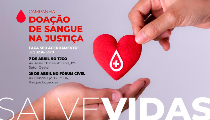 A unidade móvel do Hemocentro de Goiás estará no Palácio da Justiça, sede do tribunal, na próxima quinta-feira (07/04/2022). No Fórum Cível, será possível doar na sexta-feira de 29 de abril. A doação de sangue poderá ser agendada por telefone, pelo número (62) 3236-5370. O horário de atendimento aos doadores será das 8h às 16h.TJGO