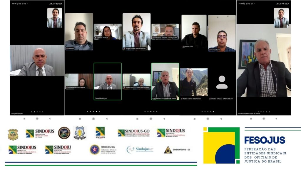 A Diretoria da Federação das Entidades Sindicais de Oficiais de Justiça do Brasil – Fesojus-BR, acompanhada dos Presidentes dos Sindicatos dos Oficiais de Justiça Avaliadores nos Estados – Sindojus, reuniu-se com o desembargador do Tribunal Regional Federal (TRF) da 2ª Região, dr. Theophilo Antonio Miguel Filho. O encontro, ocorrido virtualmente na tarde da última quarta-feira, dia 27 de maio, priorizou a discussão de ações no Conselho Nacional de Justiça (CNJ), visando o aprimoramento da eficiência na execução dos processos judiciais.