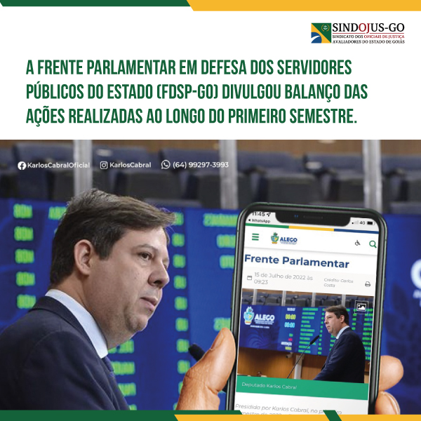 A Frente Parlamentar em Defesa dos Servidores Públicos do Estado (FDSP-GO) divulgou balanço das ações realizadas ao longo do primeiro semestre. Presidida pelo deputado Karlos Cabral (PSB), a Frente Parlamentar tem como objetivo principal, debater as pautas de interesse dos servidores públicos estaduais.