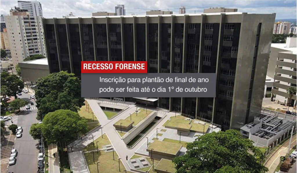 O Tribunal de Justiça do Estado de Goiás (TJGO) abriu nesta terça-feira (20 de setembro), e com prosseguimento até o dia 1º de outubro, as inscrições destinadas a desembargadoras e desembargadores, juízas e juízes, bem como a servidoras e servidores interessados em participarem do plantão do recesso forense de final de ano, de 20 de dezembro de 2022 a 6 de janeiro de 2023.
