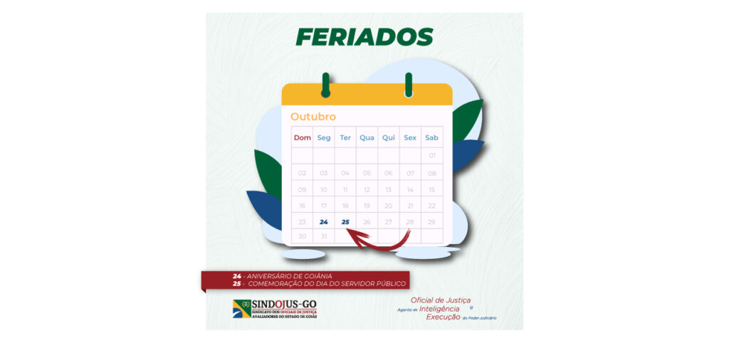 Não obstante, na segunda-feira, dia 24/10/22, será também comemorado o aniversário de Goiânia/GO pelos seus 89 anos.