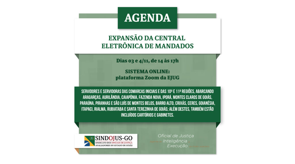 O Projeto Central Eletrônica de Mandados é coordenador pelo Juiz Auxiliar da Presidência do TJGO, Dr. Aldo Guilherme Saad Sabino de Freitas. Esta é uma prioridade da Presidência do Tribunal de Justiça, cuja implementação foi determinada pelo Conselho Nacional de Justiça (CNJ) na última inspeção realizada no TJGO. A CEM torna o processo judicial eletrônico em Goiás 100% digital, pois visa inserir a confecção, distribuição, cumprimento e certificação de mandados judiciais dentro do processo judicial eletrônico. Assim, diante desta importante iniciativa da administração deste Tribunal, este curso busca tornar mais célere, efetivo e eficiente a utilização da CEM. O curso é coordenado por Carolina Rosa Santos, Vice-presidente do SINDOJUS-GO e Oficiala de Justiça de Senador Canedo (comarca piloto).