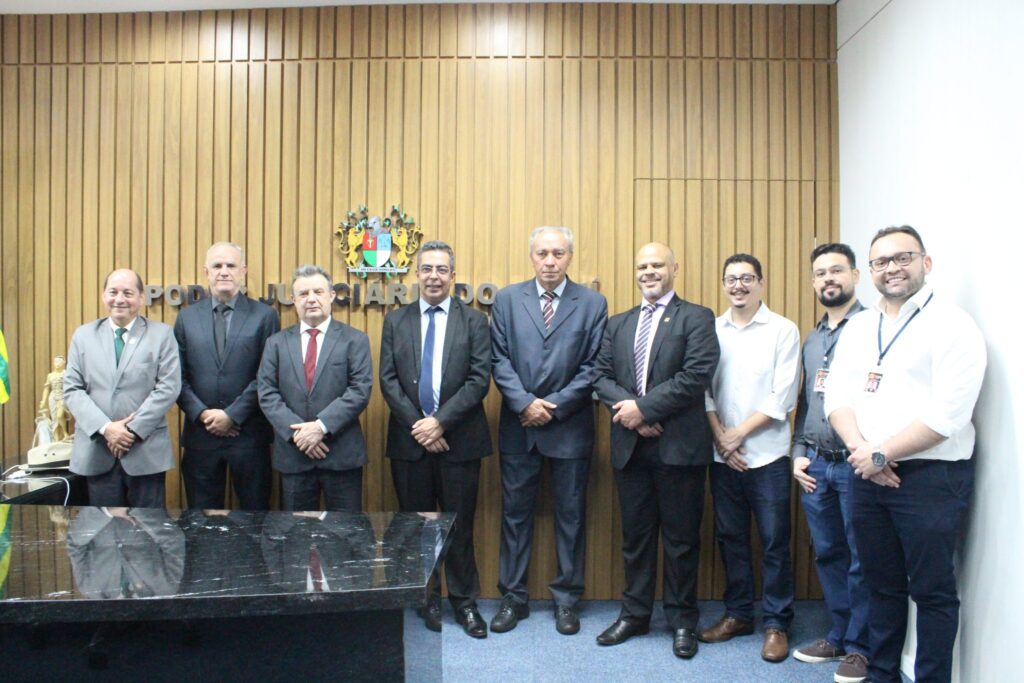 O presidente do Sindicato dos Oficiais de Justiça Avaliadores do Estado de Goiás (Sindojus-GO) e presidente da Federação das Entidades Sindicais dos Oficiais de Justiça do Brasil (Fesojus), Eleandro Alves, o presidente do Sindojus-PI, Carlos Henrique Sales, o presidente licenciado da Fesojus, João Bastita, e o diretor Legislativo da Fesojus, Luiz Arthur reuniram-se, na terça-feira, 24, com o desembargador do Tribunal de Justiça do Estado do Piauí (TJPI), Hilo Almeida Sousa, para discutir a realização do IV Congresso Nacional dos Oficiais de Justiça (IV Conojus), que será realizado nos dias 23 e 24 de março, em Teresina – PI.