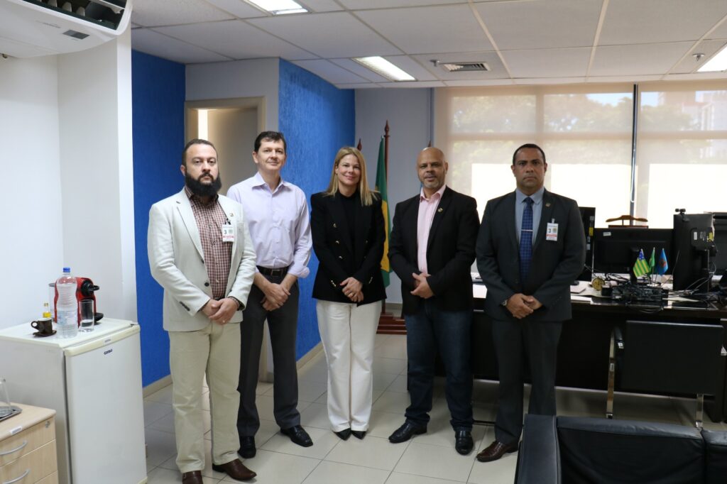 Representantes do SINDOJUS-GO reuniram-se com a superintendente da Polícia Federal em Goiás, dra. Marcela Rodrigues de Siqueira Vicente, e com o delegado federal Raul Alexandre Marques de Souza, no último dia 31 de março. Na pauta da reunião, o porte de arma para o Oficialato de Justiça. O sindicato iniciou tratativas para auxiliar na questão. O sindicato foi representando pelo seu presidente, Eleandro Alves Almeida; pelo diretor de Núcleo Político e Comunicação, José Moizaniel Formiga Dias; e pelo secretário-geral e diretor de Núcleo de Assuntos Sindicais, Sociais e coordenador de Regionais, Alessandro Gonçalves Barbosa.