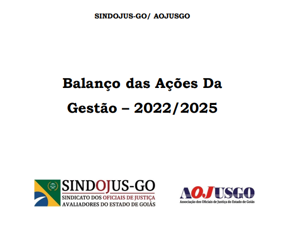 O Sindicato dos Oficiais de Justiça Avaliadores do Estado de Goiás divulga o balanço das atividades realizadas ao longo do ano em prol de seus associados. O SINDOJUS–GO e a AOJUSGO apresentam, de forma exemplificativa, algumas das ações desenvolvidas ao longo deste período, reafirmando nosso compromisso com a valorização e fortalecimento da categoria.